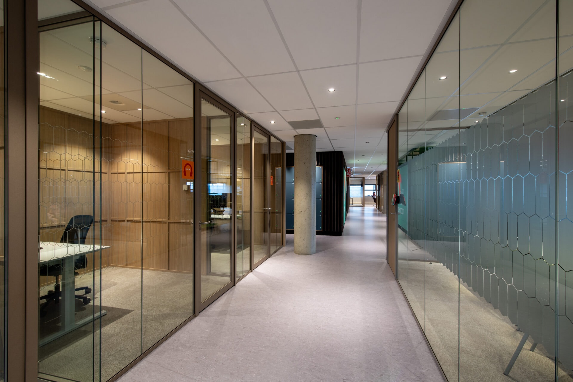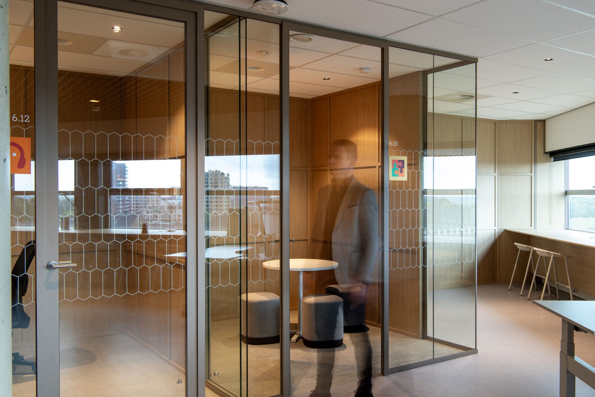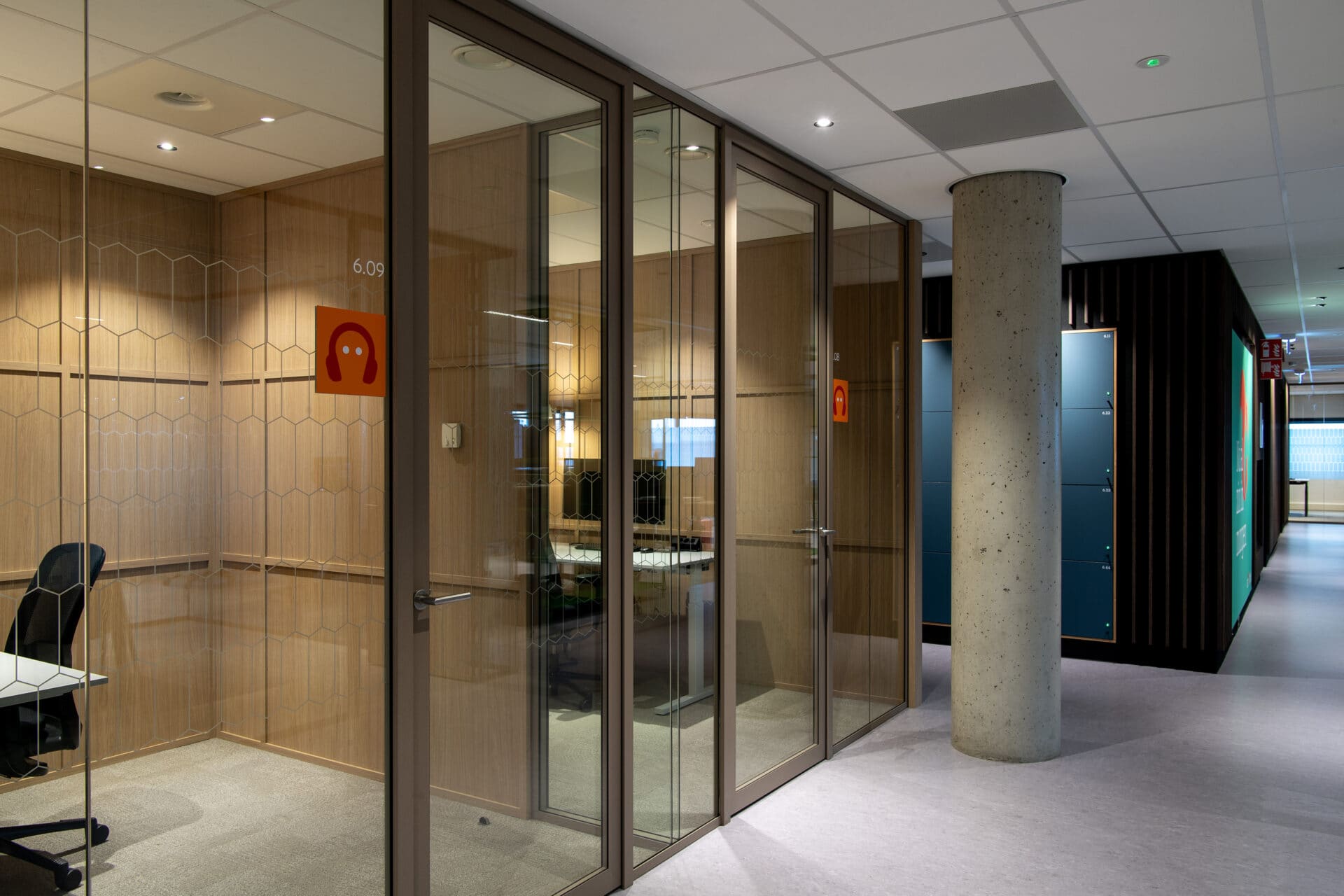 Around the focus rooms, double glazing was applied in the doors combined with acoustic glass within the SERENITY partitions. This combination ensures optimal acoustic performance — exactly what a modern, dynamic office environment requires. “Quiet where needed, open where possible,” Francis summarises.