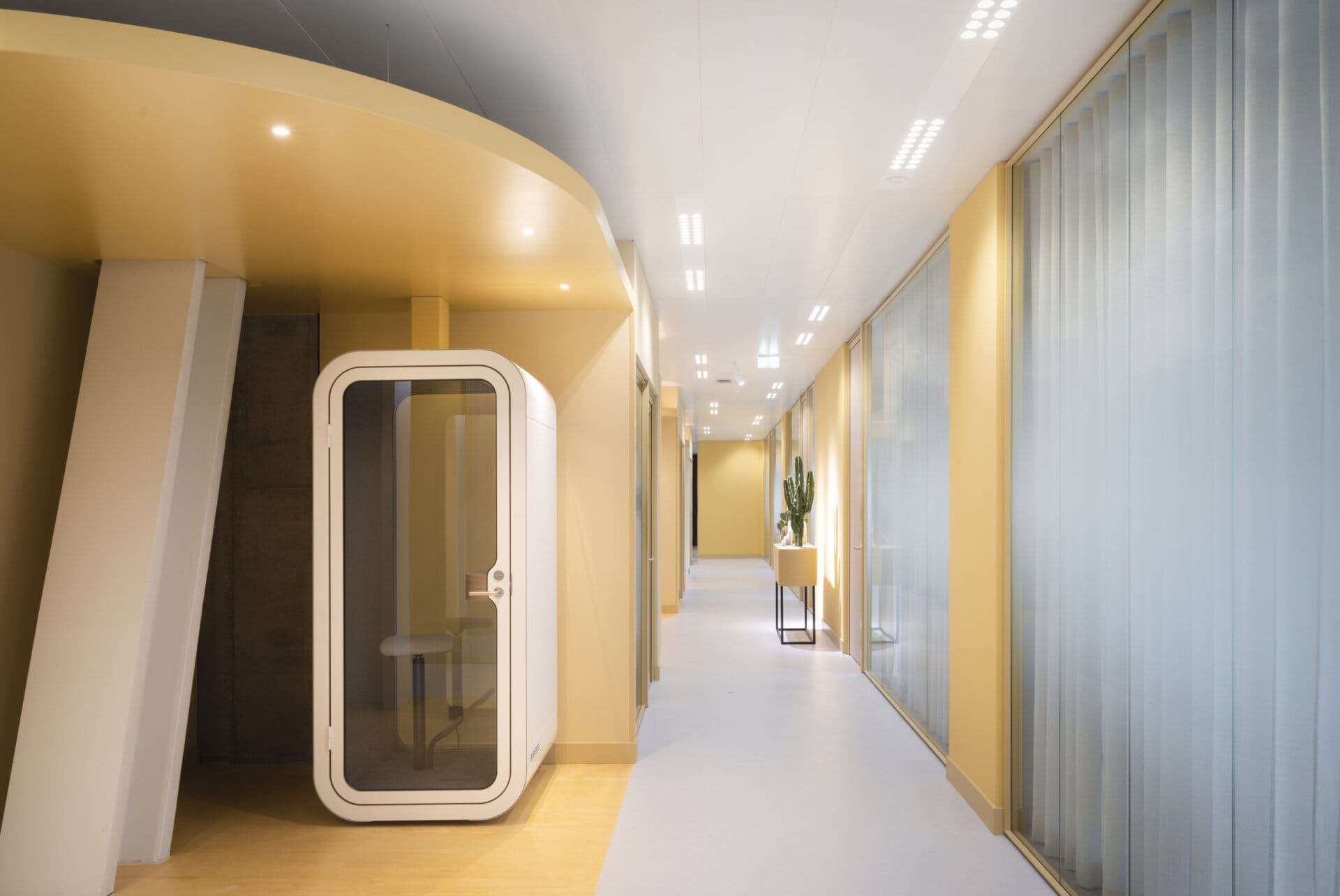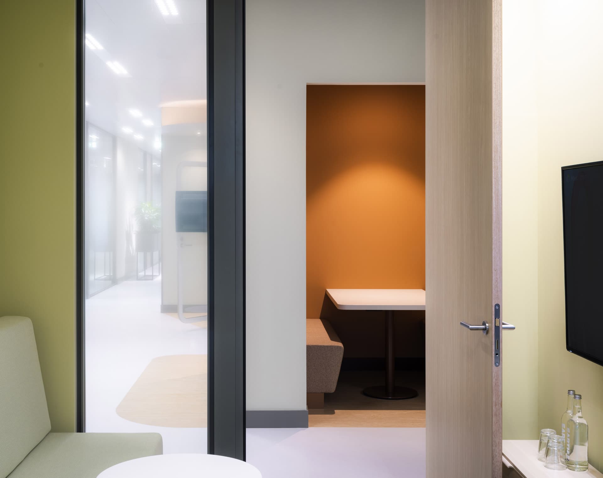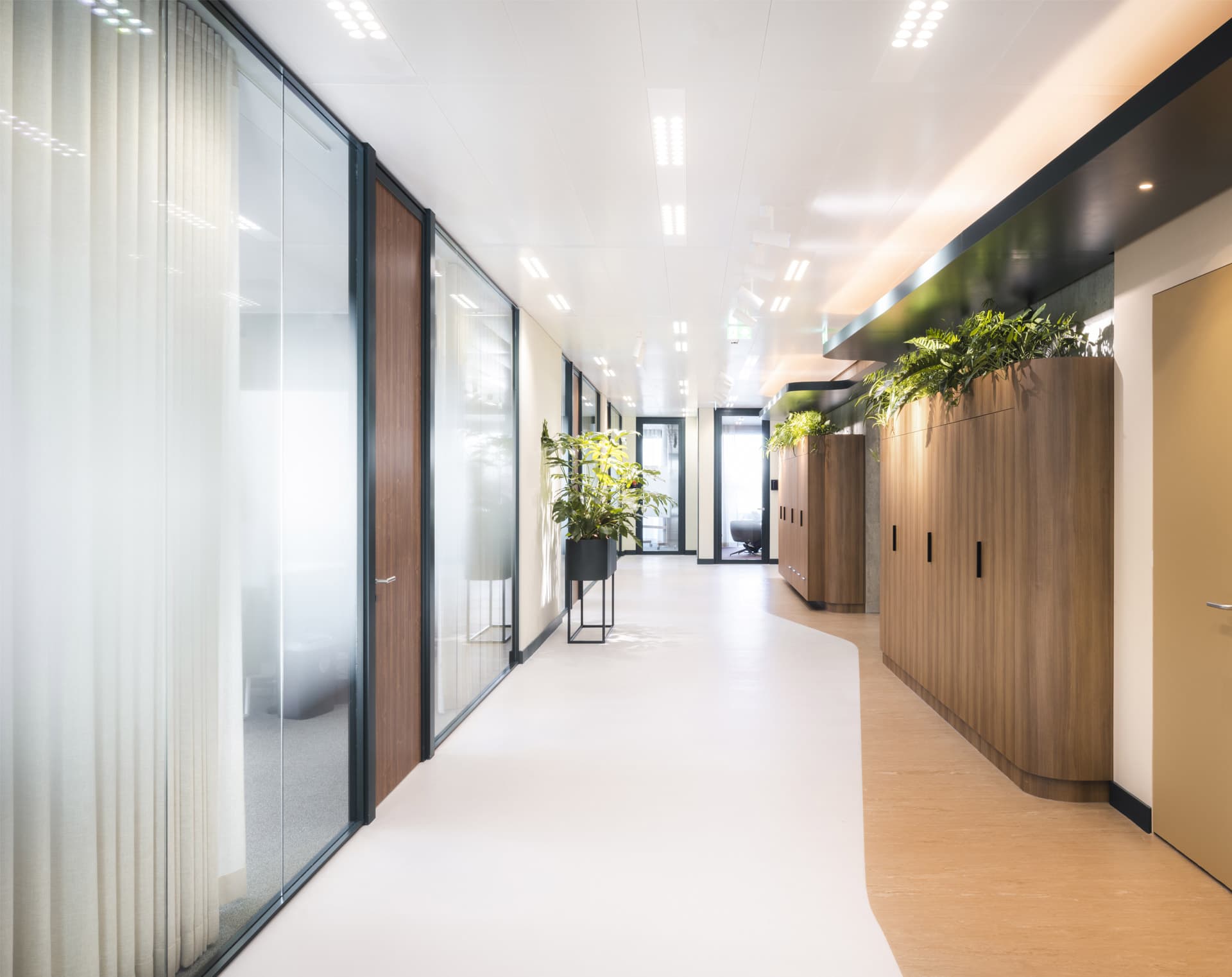 Employees at JetBrains can personalise their workplace and set their rhythm for the working day thanks to personalised workstations and team rooms. Throughout the concept, the TEN single-glazed partition was chosen in combination with HPL doors and frame doors. Matching all the themes of the floors, the TEN glass partition can be seen in as many as ten different RAL colours. The TEN partition creates a spacious and open feeling in every office. It enhances the landscape experience in any office space even more! The TEN single-glazed partition bears the prestigious Cradle to Cradle Silver certification. As a result, the partition fits perfectly into JetBrains’ sustainable working environment.