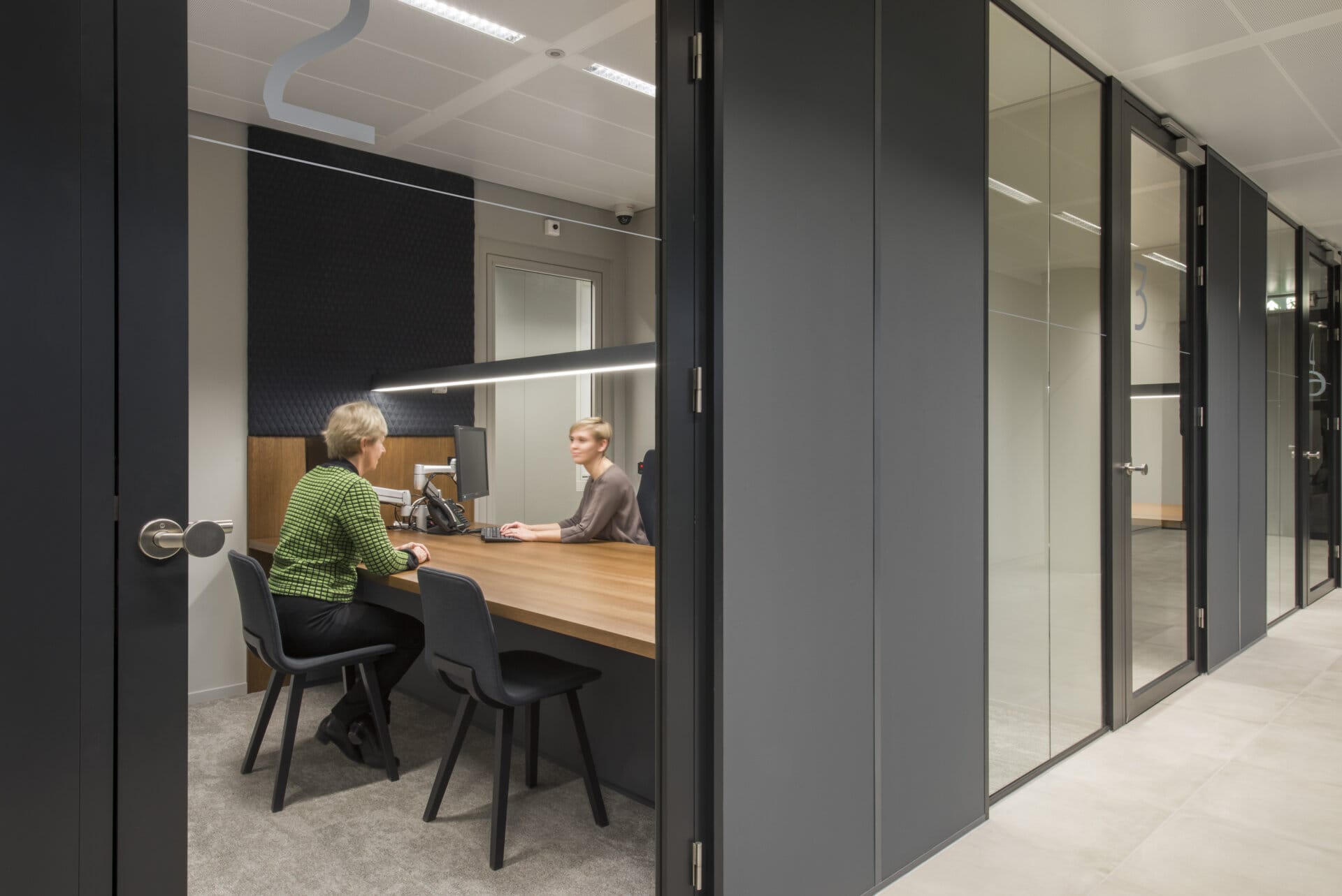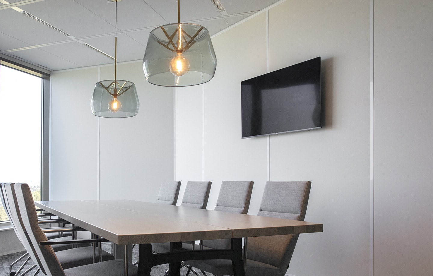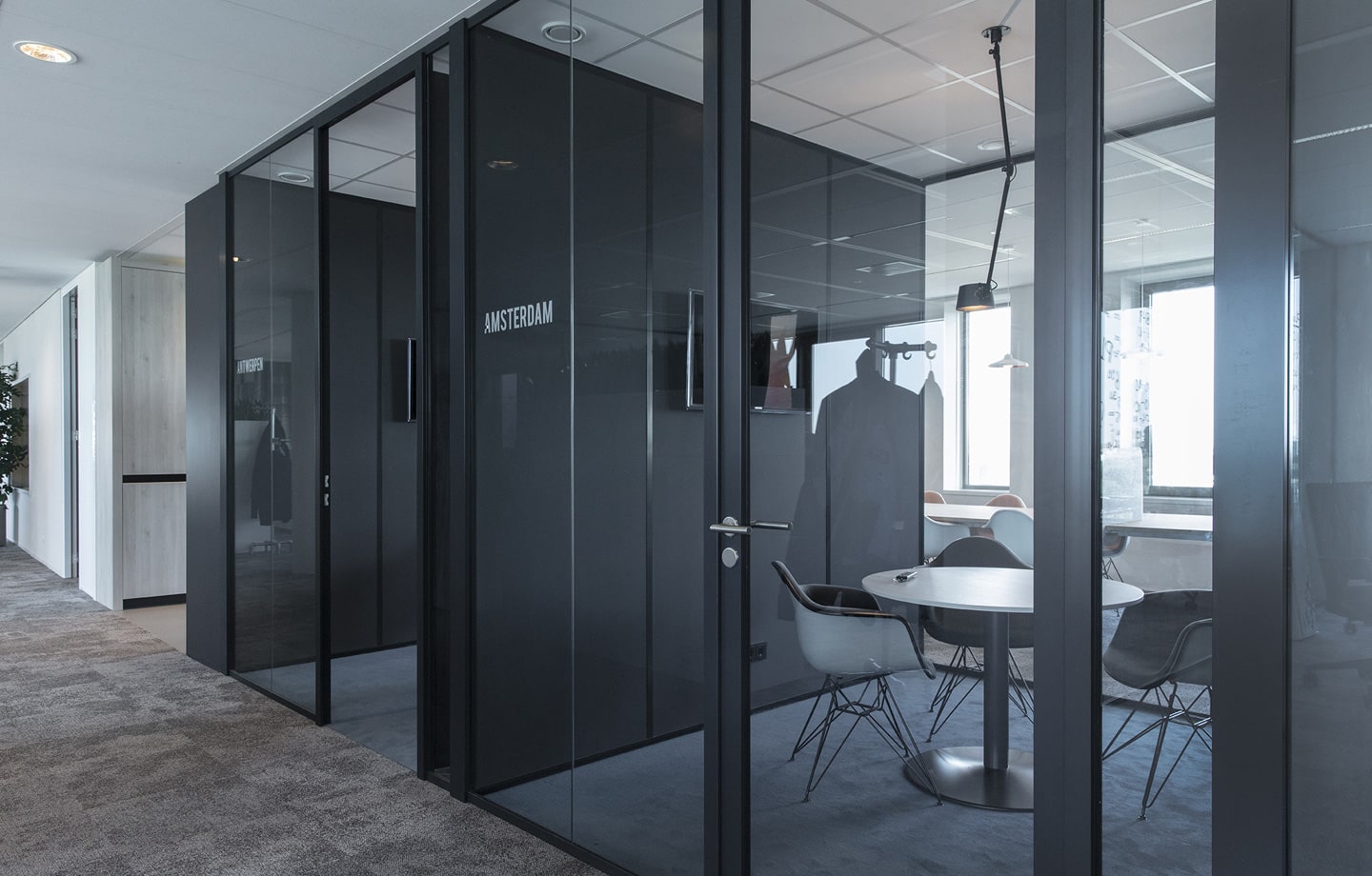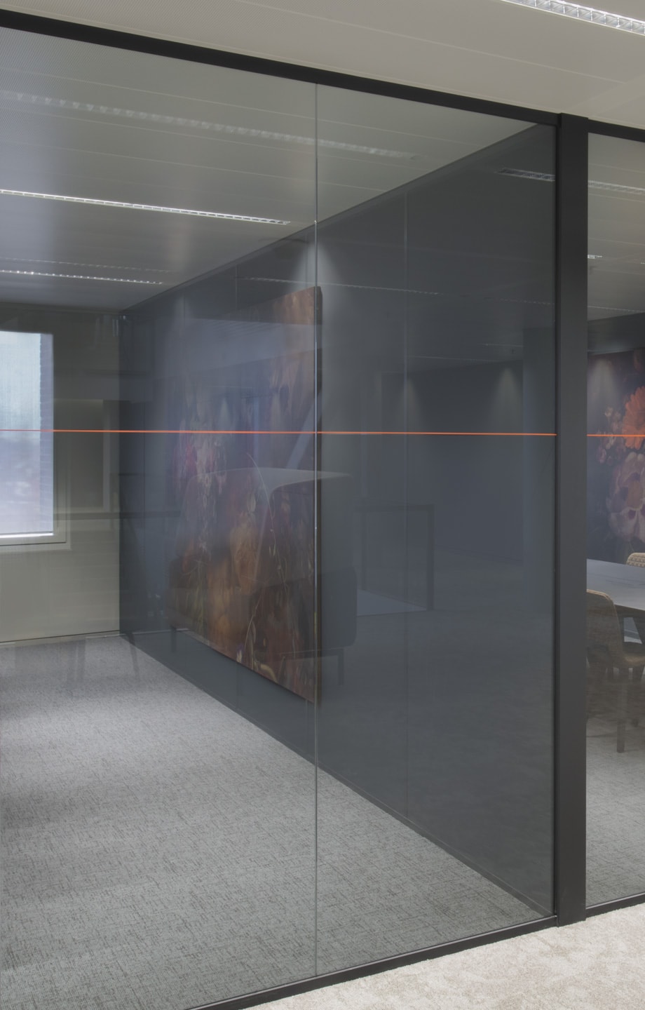 BASIC is the most accessible solid partition system within our collection. The wall consists of sleek gypsum panels finished with a low-maintenance vinyl surface. Thanks to its smooth finish and the use of subtle aluminium clamping profiles, the result is a calm, professional appearance that fits seamlessly into almost any office interior.