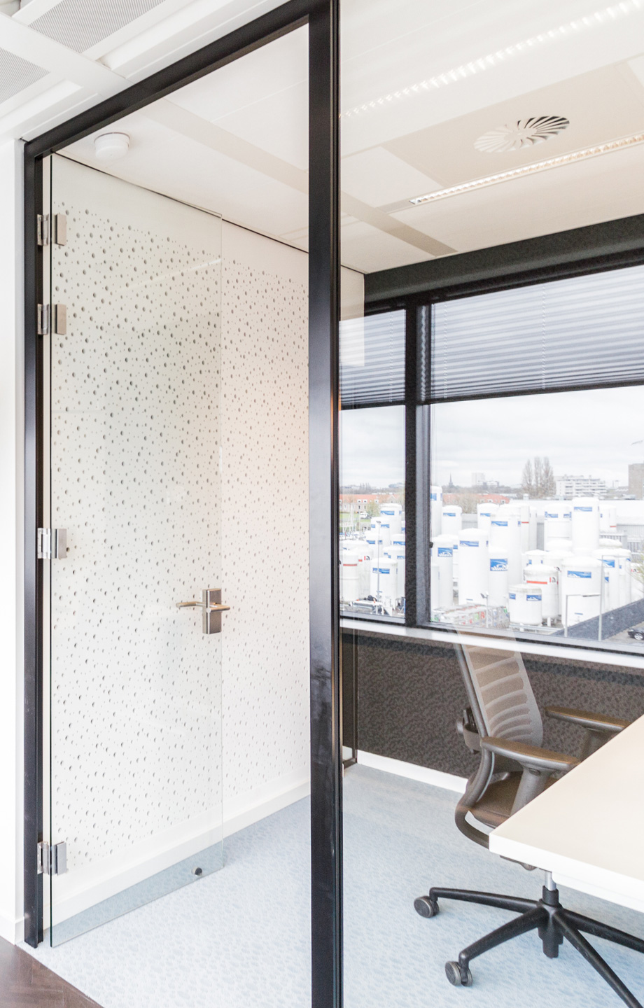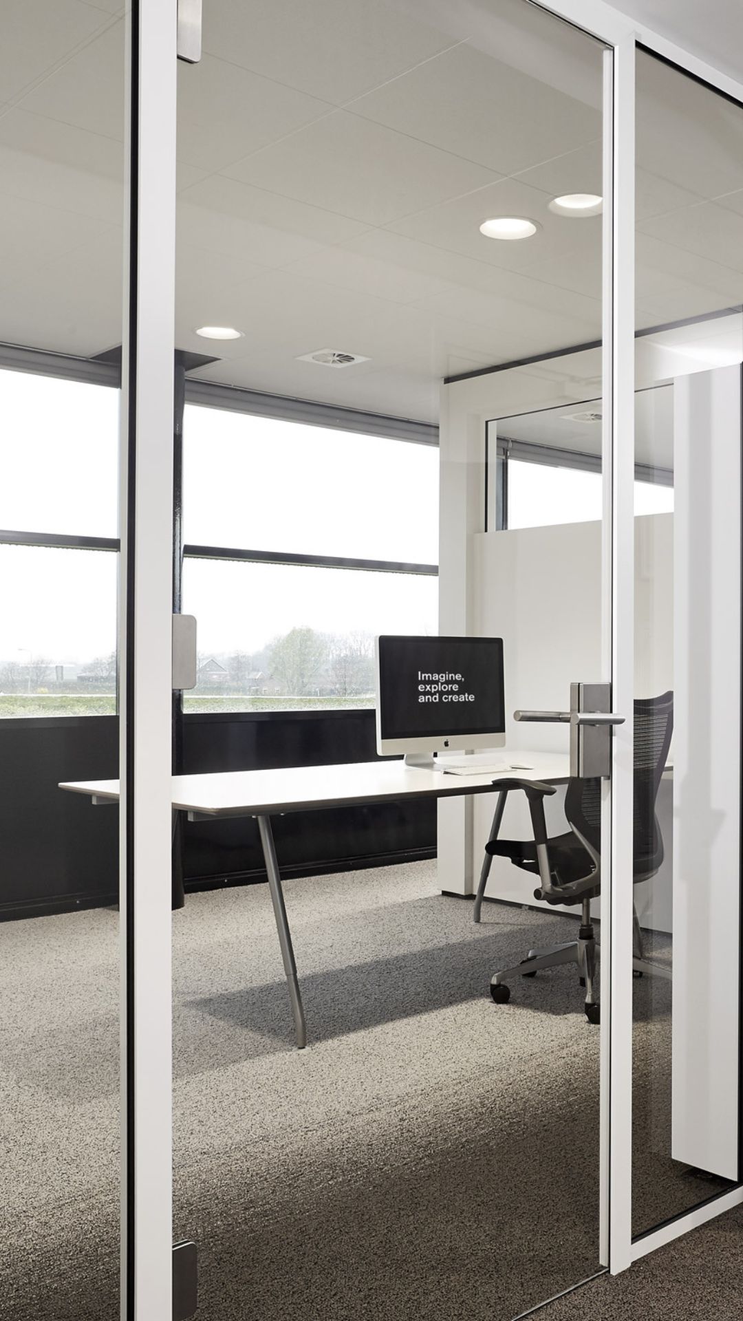 The FULL-GLASS DOOR is a transparent and understated solution that integrates effortlessly with a wide range of partition systems. The fully glazed door leaf preserves the visual lines of the wall and creates an open character without visual interruption. This door is ideal for applications where the focus is not on the door itself, but on the overall design of the space.