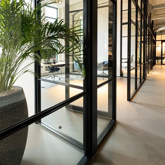 The field of architecture is in constant flux, intricately connected to the ever-shifting tides of the economy and society. Consequently, it continually assumes new and evolving forms, often preceding clients’ precise articulation of their desires. This dynamism makes concretising designs a specialism. “The swift assimilation of emerging trends and the embodiment of these ideas into an architectural vision is not only a challenge for architects but also for us as suppliers,” Frank van der Bol explains. “For example, a few years ago window frames had to be as slim as possible and now we see clear, robust contours. We, too, harmonise with these evolving rhythms, proactively responding to cues from architects. This even leads to unique partitions, such as the EGO used at Pixelpool. This partition features a grid pattern that adds an extra dimension to spaces.”